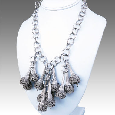 It's the sort of necklace you wear when you want to make a mini entrance. Not as "Look at me" as say the poppy or dogwood statement pieces, but nevertheless will attract some side ward glances. Warning - If you do not want people to notice you, this is not a piece for you.