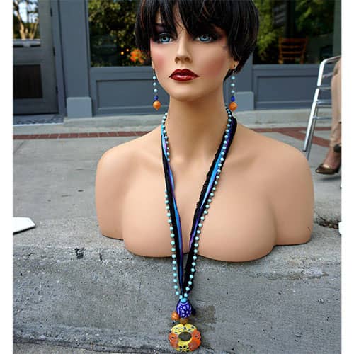 Using color combinations found in nature, Teresa Goodall creates accessories that work with the casual soft dressing of today. A floral garden, to an ocean paradise,... a calming sunset, to the enchanted north woods: colors are layered and blended to make jewelry to complement not one piece of the wardrobe, but many.