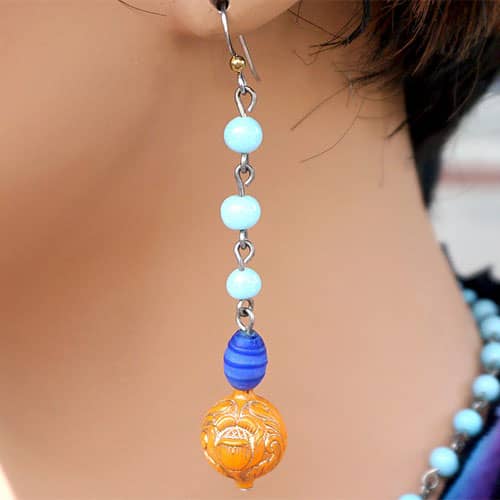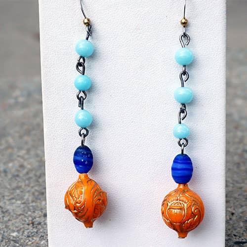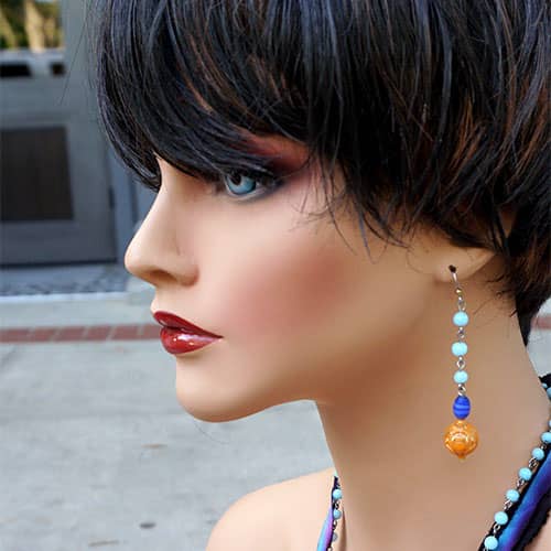 Earrings measure 3" from center of the ear wire curve to bottom.