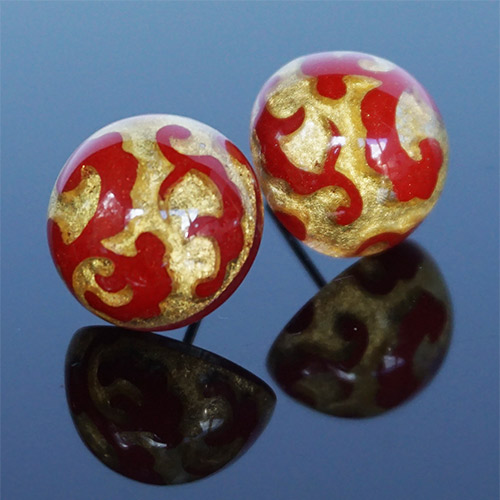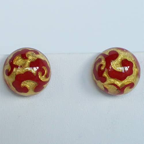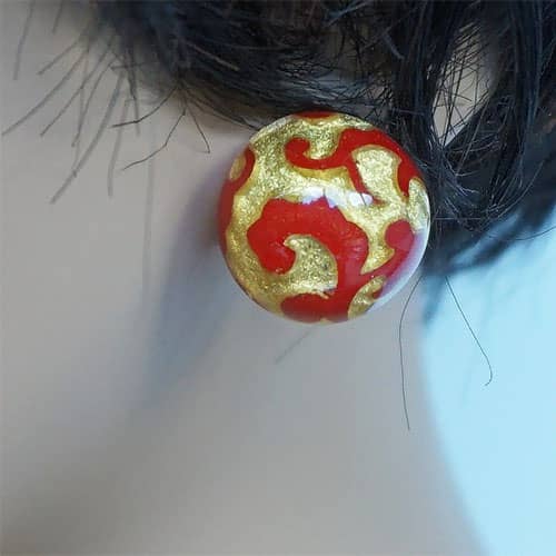 Zsiska has perfected the marriage of clear resin and 24 KT gold leaf and created a simple but bold fashion statement. The gold leaf is under the clear resin, which looks like glass.