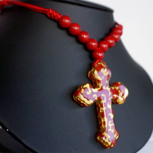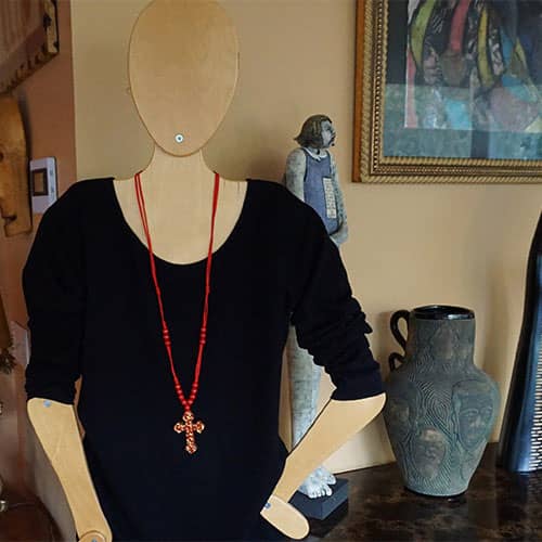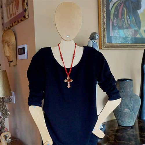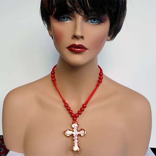 This is a great versatile piece, equally at home with a casual outfit as well as the office or dinner date . And let's not forget about the holidays. The pendant is about 3" long and 2" wide. Presented on an adjustable satin cord, a Zsiska standard. Wear at full length (about 40") or any length shorter that is comfortable for you. Please see the model for an idea of the lengths it can go to.