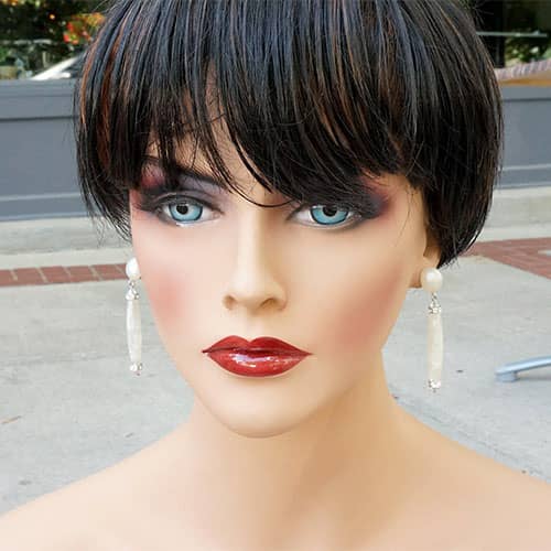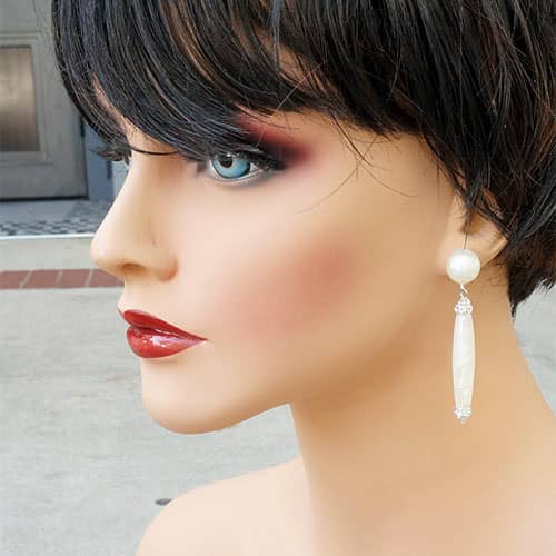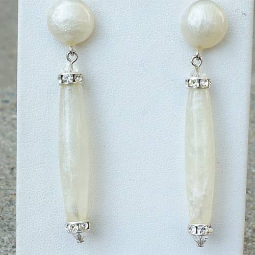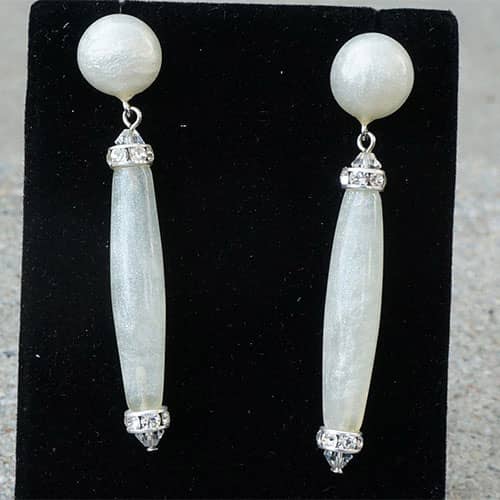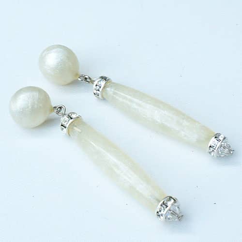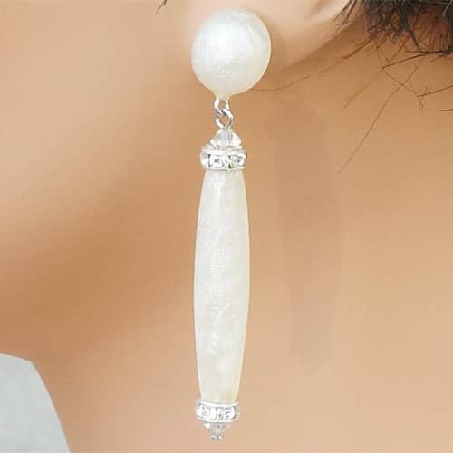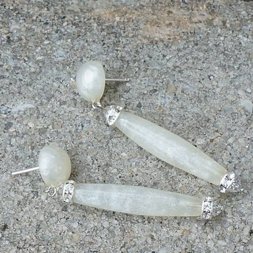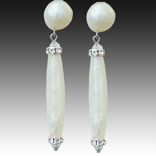 Winter white resin and sparkly Swarovski crystals post earrings. Earrings measure 2.25" as measured from the top to bottom. The design piece is 1.75" long.