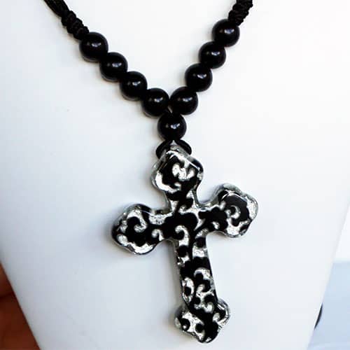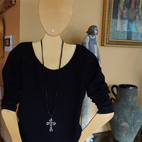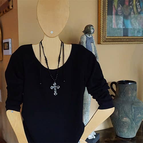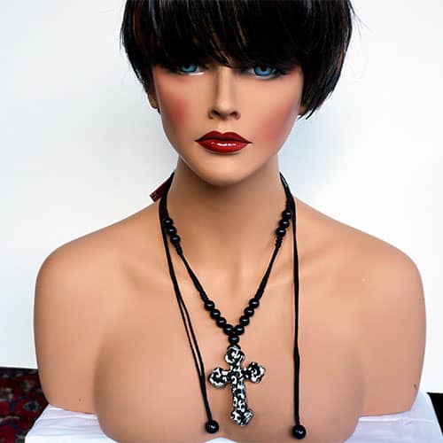 This is a great versatile piece, equally at home with a casual outfit as well as the office or dinner date . And let's not forget about the holidays. The pendant is about 3" long and 2" wide. Presented on an adjustable satin cord, a Zsiska standard. Wear at full length (about 40") or any length shorter that is comfortable for you. Please see the model for an idea of the lengths it can go to.