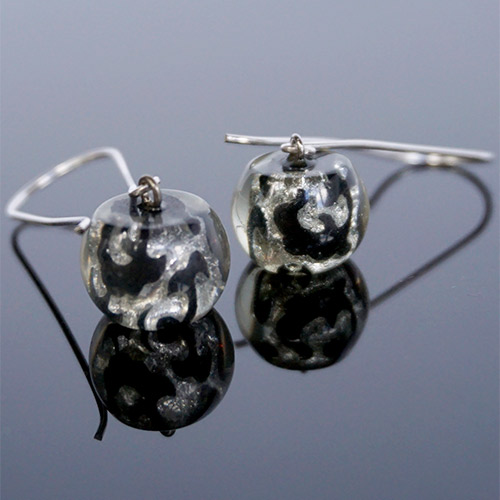 Zsiska has perfected the marriage of clear resin and silverleaf and created a simple but bold fashion statement. The silver leaf and black design is under the clear resin, which looks like glass.