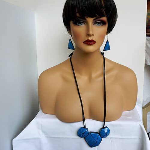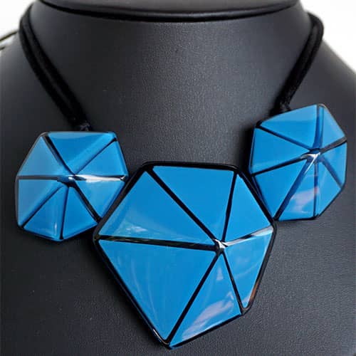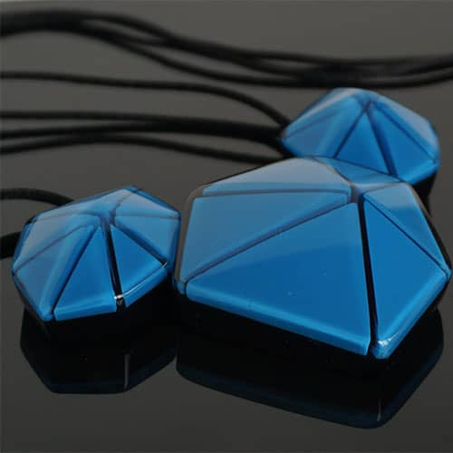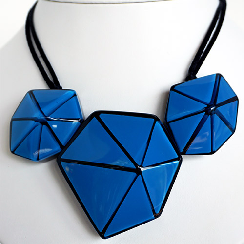 There are 3 thick (almost 1/2") "beads". The center one is 2.5" across the widest part and just under 3" long. The beads on either side are 1.5" wide and 2" long. The cord is satin, and adjustable from very long to where it's comfortable for you. Please look at the detail photos to see an example of the lengths it can go to.