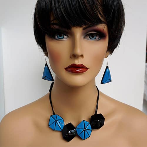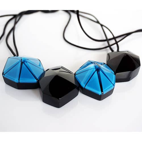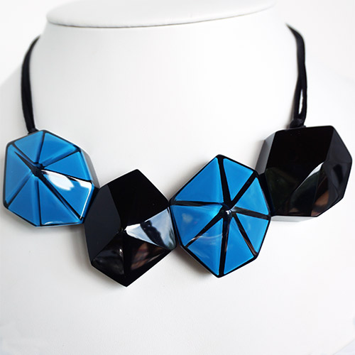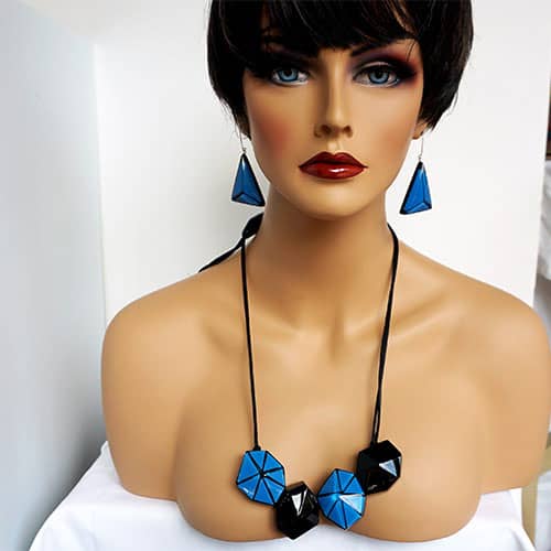 There are 5 thick (almost 1/2") "beads" each 2" across the widest part and 1.5 long. The cord is satin, and adjustable from very long to where it's comfortable for you. Please look at the detail photos to see an example of the lengths it can go to.