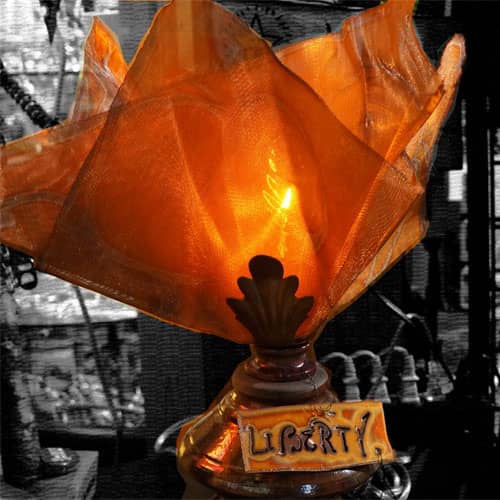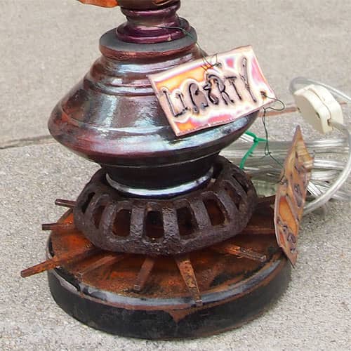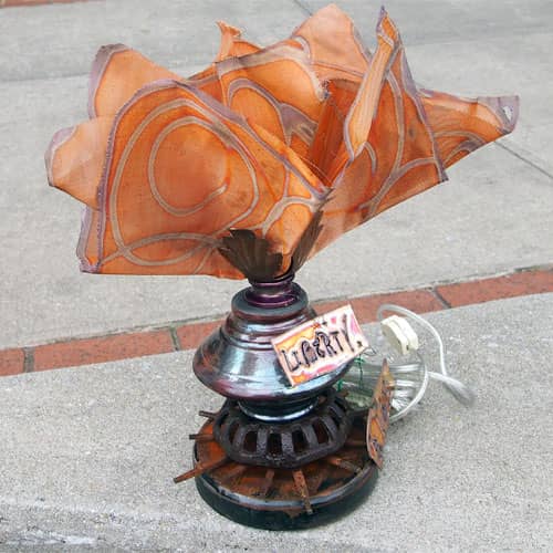 Linda Hobdy, the creative mind of Nashville based Twisted Sisters Art creates original artistic lighting and metal sculptures using copper, steel, cast iron, glass and found treasures using an oxy-acetylene torch, mig welder, and plasma cutter to shape large pieces of sheet metal into unusual and intricate art pieces.