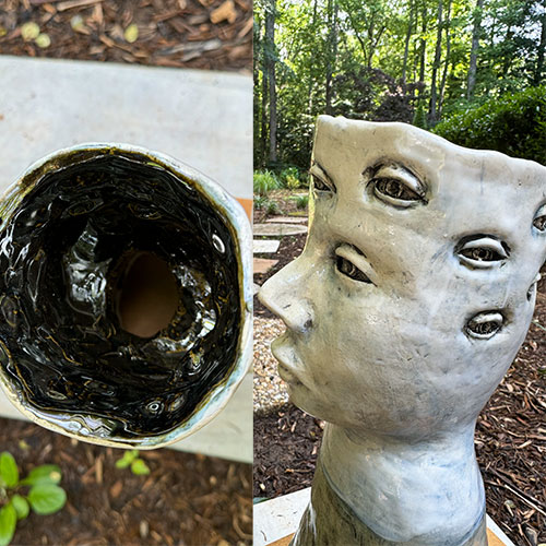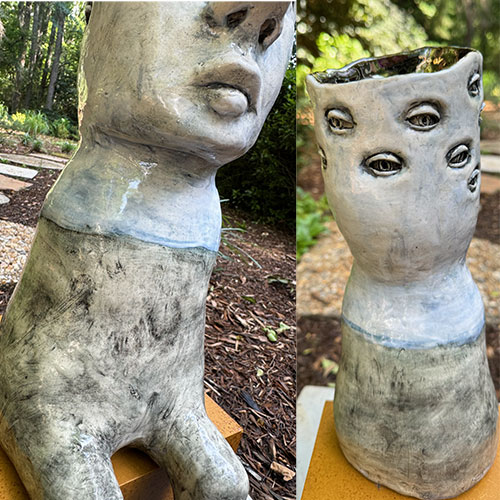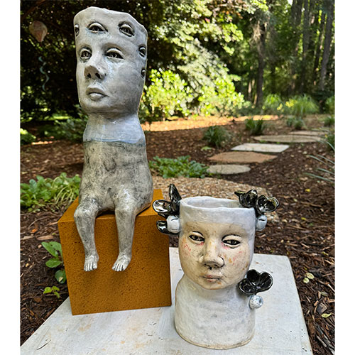 Savannah artist Ashley Benton builds each piece individually and therefore each are one of a kind. Her work is intended to allow the viewer to imagine their own story associated with the work. It is at once sensitive and surreal. The pieces can be placed as decorative accents within your space or put to work as holders of your things ranging from flowers to cotton balls.