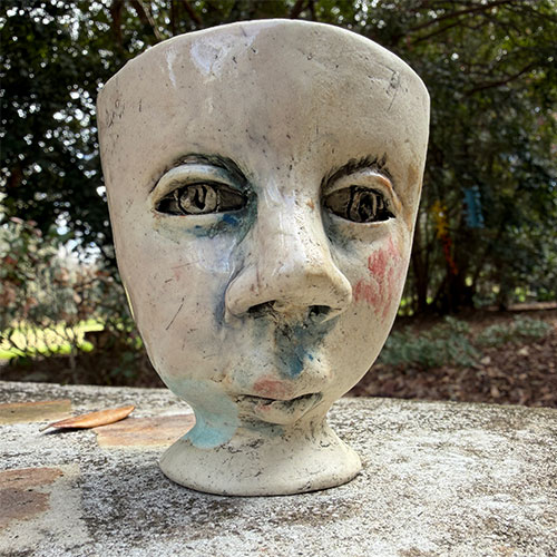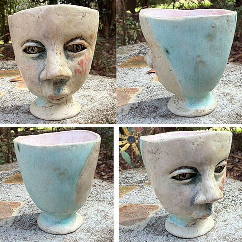 Savannah artist Ashley Benton builds each piece individually and therefore each are one of a kind. Her work is intended to allow the viewer to imagine their own story associated with the work. It is at once sensitive and surreal. The pieces can be placed as decorative accents within your space or put to work as holders of your things ranging from flowers to cotton balls.