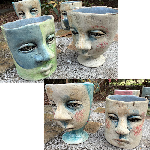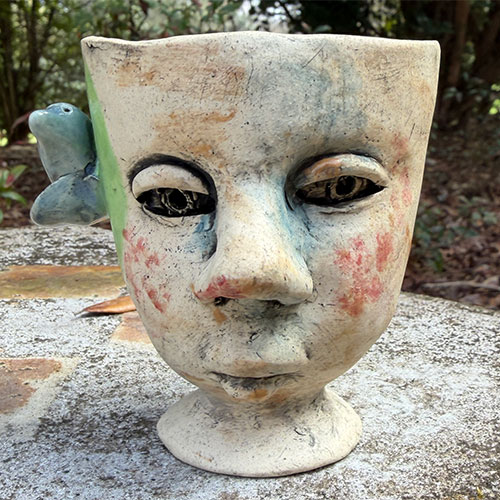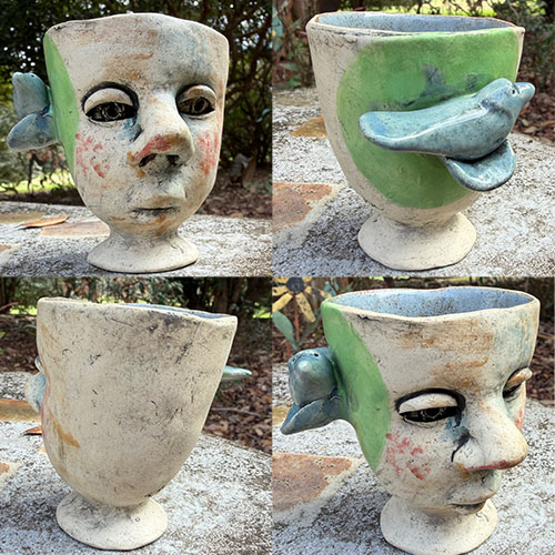 Savannah artist Ashley Benton builds each piece individually and therefore each are one of a kind. Her work is intended to allow the viewer to imagine their own story associated with the work. It is at once sensitive and surreal. The pieces can be placed as decorative accents within your space or put to work as holders of your things ranging from flowers to cotton balls.
