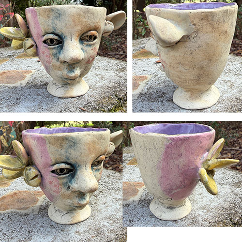 Savannah artist Ashley Benton builds each piece individually and therefore each are one of a kind. Her work is intended to allow the viewer to imagine their own story associated with the work. It is at once sensitive and surreal. The pieces can be placed as decorative accents within your space or put to work as holders of your things ranging from flowers to cotton balls.