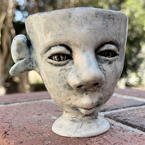 Savannah artist Ashley Benton builds each piece individually and therefore each are one of a kind. Her work is intended to allow the viewer to imagine their own story associated with the work. It is at once sensitive and surreal. The pieces can be placed as decorative accents within your space or put to work as holders of your things ranging from flowers to cotton balls.