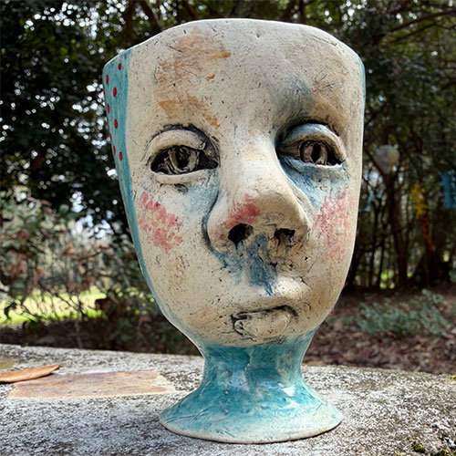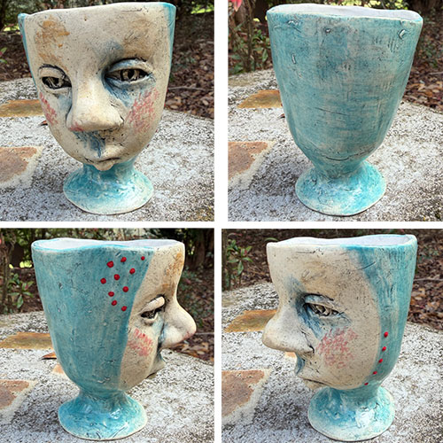 Savannah artist Ashley Benton builds each piece individually and therefore each are one of a kind. Her work is intended to allow the viewer to imagine their own story associated with the work. It is at once sensitive and surreal. The pieces can be placed as decorative accents within your space or put to work as holders of your things ranging from flowers to cotton balls.