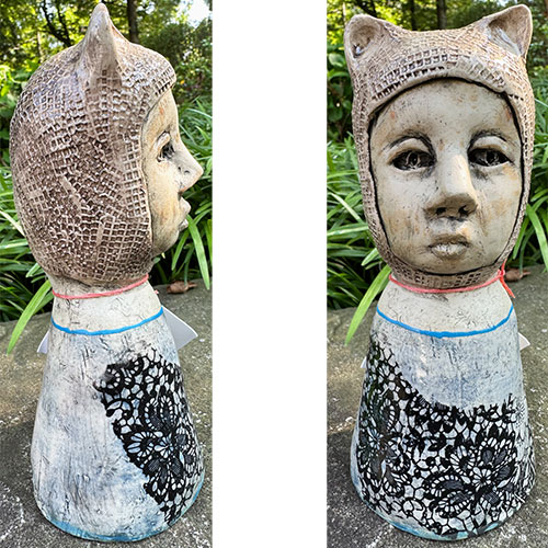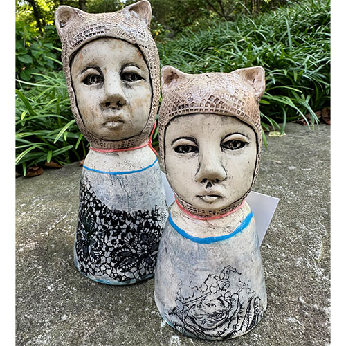 Savannah artist Ashley Benton builds each piece individually and therefore each are one of a kind. Her work is intended to allow the viewer to imagine their own story associated with the work. It is at once sensitive and surreal. The pieces can be placed as decorative accents within your space or put to work as holders of your things ranging from flowers to cotton balls.