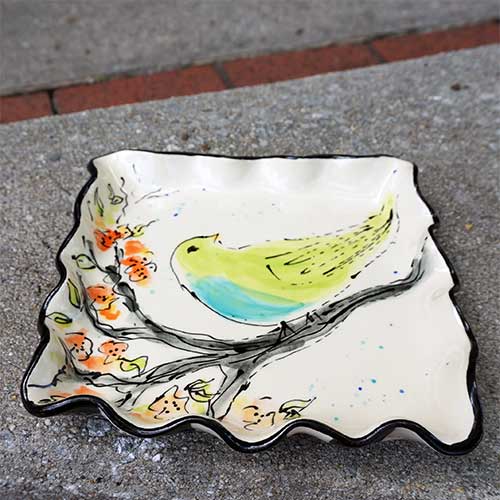 Hand formed and sculptured square tray. A great tabletop accessory for your afternoon tea. Serve your pound cake, your homemade cookies, that "homemade" cake you picked up on the way home. it's all up to you. Trays average 7" square and 1" tall. You receive the piece pictured. And here's the exciting part - when you are not using it to impress your friends with your baking skills, you can hang it on the wall!