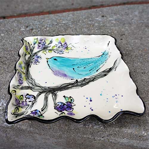 Hand formed and sculptured square tray. A great tabletop accessory for your afternoon tea. Serve your pound cake, your homemade cookies, that "homemade" cake you picked up on the way home. it's all up to you. Trays average 7" square and 1" tall. You receive the piece pictured. And here's the exciting part - when you are not using it to impress your friends with your baking skills, you can hang it on the wall!