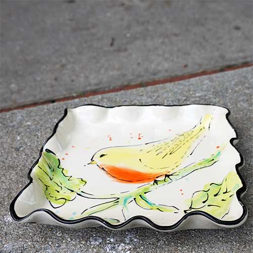 Hand formed and sculptured square tray. A great tabletop accessory for your afternoon tea. Serve your pound cake, your homemade cookies, that "homemade" cake you picked up on the way home. it's all up to you. Trays average 7" square and 1" tall. You receive the piece pictured. And here's the exciting part - when you are not using it to impress your friends with your baking skills, you can hang it on the wall!