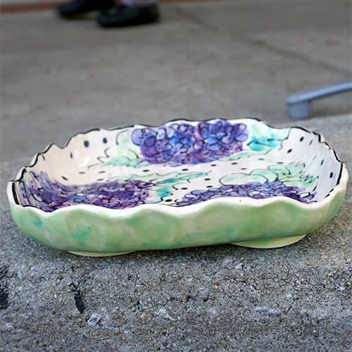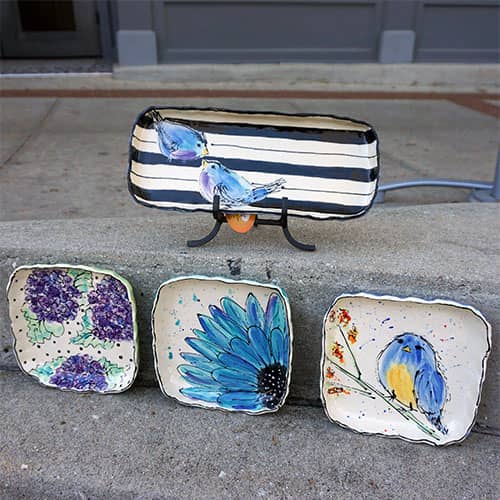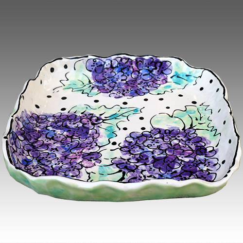 Hand formed and sculptured square tray. A great tabletop accessory for your afternoon tea. Serve your pound cake, your homemade cookies, that "homemade" cake you picked up on the way home. it's all up to you. Trays average 6.25" to 6.5" square and 1" tall. You receive the piece pictured.
