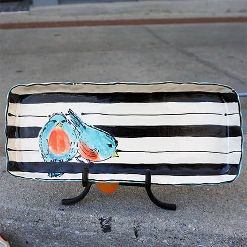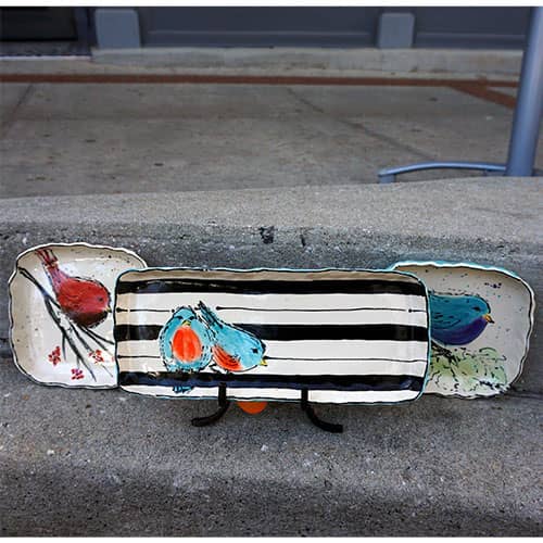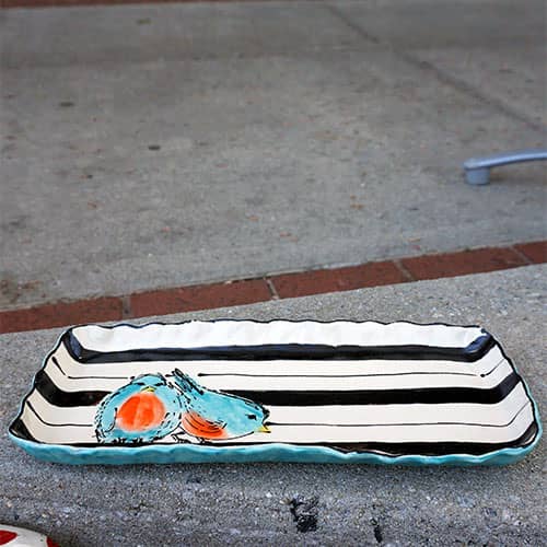 Hand formed and sculptured square tray. A great tabletop accessory for your afternoon tea. Serve your pound cake, your homemade cookies, that "homemade" cake you picked up on the way home. it's all up to you. Trays average 4.75 - 5" wide, 11.5" long and 1" tall.