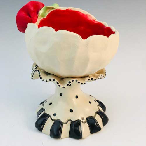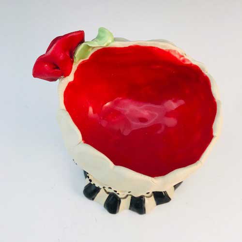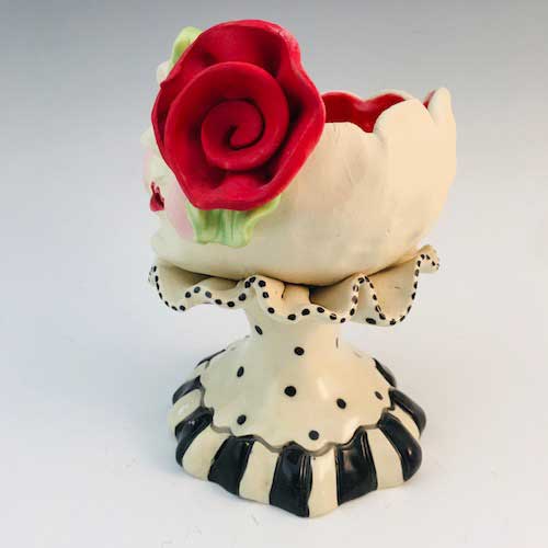 We no longer have this one on the shelf and ready to ship, but Cindy will lovingly create one just for you and drop ship it from her studio directly to you. Please be aware, each piece is an individual, though the look and feel will be similar, and, there will be time between order and shipment depending on the number of orders Cindy has at the time of order. Typically takes 7-10 days from the sculpting process through to the firing and taking drying time into consideration.