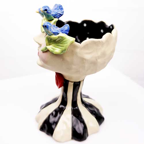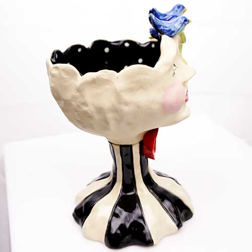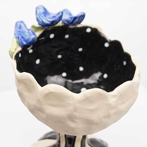 Hand sculptured stemware glazed in bright pastels on the inside and matte glaze on the outside. Food safe inside. Great presentation for wine or Champagne glasses cotton balls, soap, candies, nuts, mini plants, etc