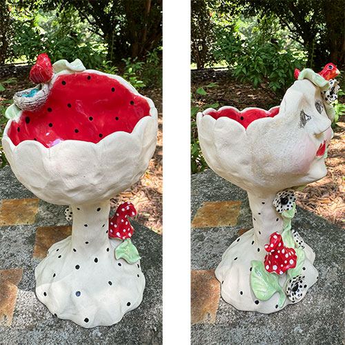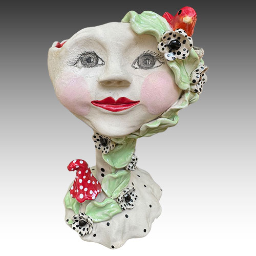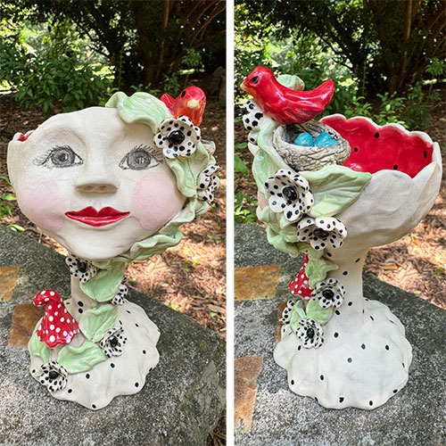 Each piece is glazed in bright pastels on the inside and matte glaze on the outside. Food safe inside. Great presentation for cotton balls, soap, candies, nuts, mini plants, etc. The piece is 8" tall with a 4" base and a 4" top opening.
