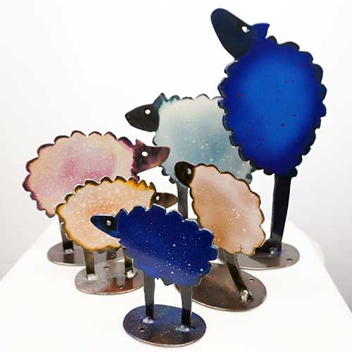 Sheep measures about 4.25" tall, 4" wide, on a 2.75" x 3.5" base. You receive the sheep pictured.