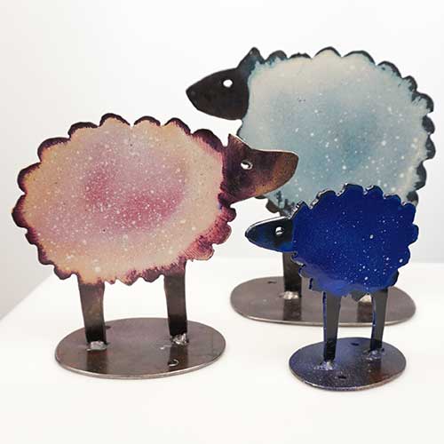 Sheep measures about 5.5" tall, 6" wide, on a 2.75" x 3.75" base. You receive the sheep pictured.