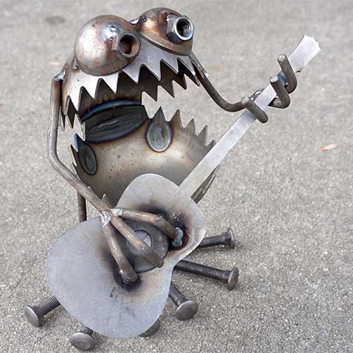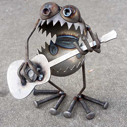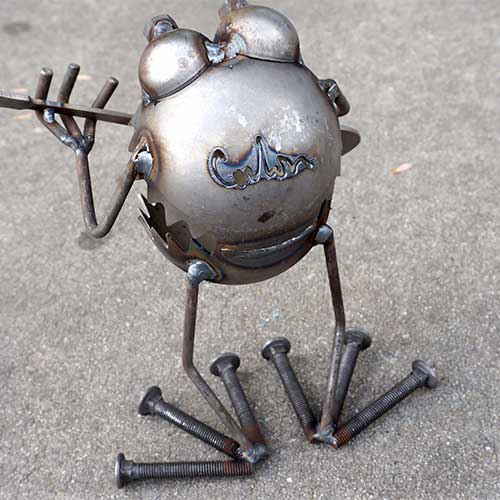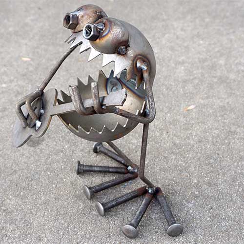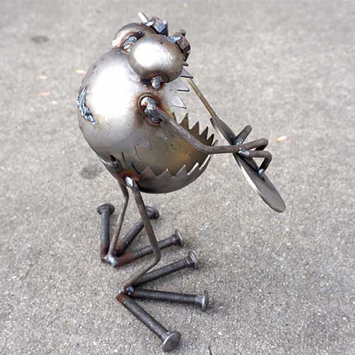 Sugar Post critters are made in Salt Lake City, Utah. All items are handmade from recycled scrap metal and vintage World War II military surplus. Most items are made from 100% post consumer waste or surplus. Some incorporate factory "seconds", or mis-cuts. All products are welded, plasma cut and assembled in the studio, and every product is signed by the artist.