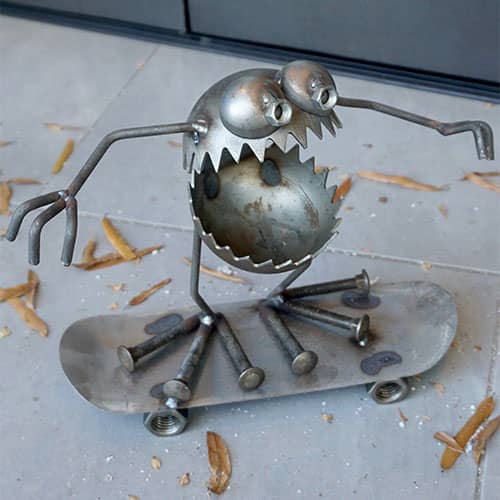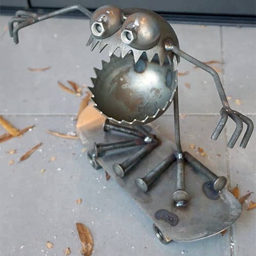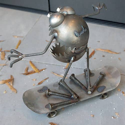 Sugar Post critters are made in Salt Lake City, Utah. All items are handmade from recycled scrap metal and vintage World War II military surplus. Most items are made from 100% post consumer waste or surplus. Some incorporate factory "seconds", or mis-cuts. All products are welded, plasma cut and assembled in the studio, and every product is signed by the artist.