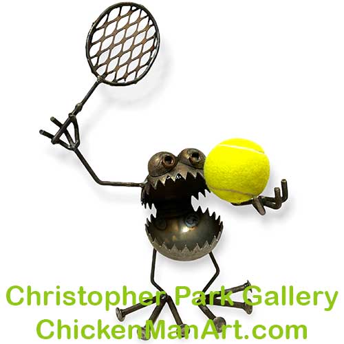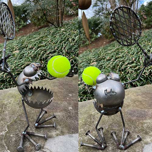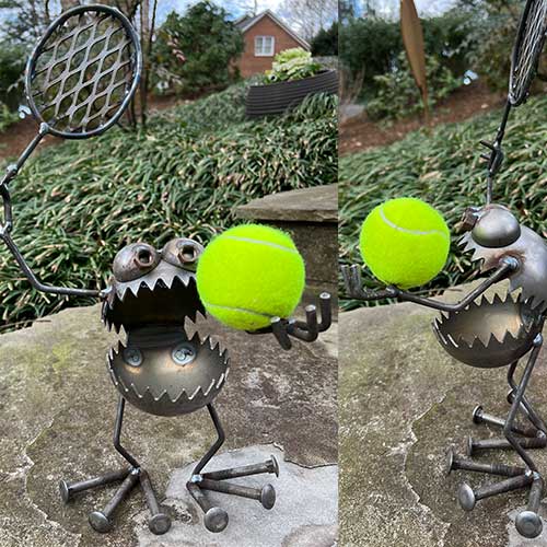 More from the wacky guys at Sugar Post. This time, you won't need a back yard - just some real estate on your desk, shelf, or fridge. But, you can still put him to work in your garden too. This guy has a powerful serve. You can just tell. Style averages 18" tall to tip of racket. 11" wide. We no longer have this one on our shelves so it will be drop shipped from the UT studio. Please allow 1 week for it to ship. It will be substantially the same in appearance, by be advise each piece is created individually.