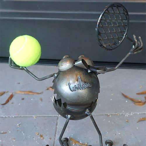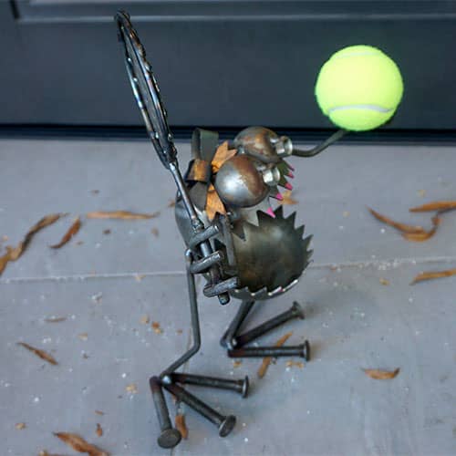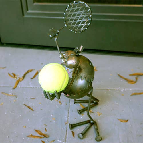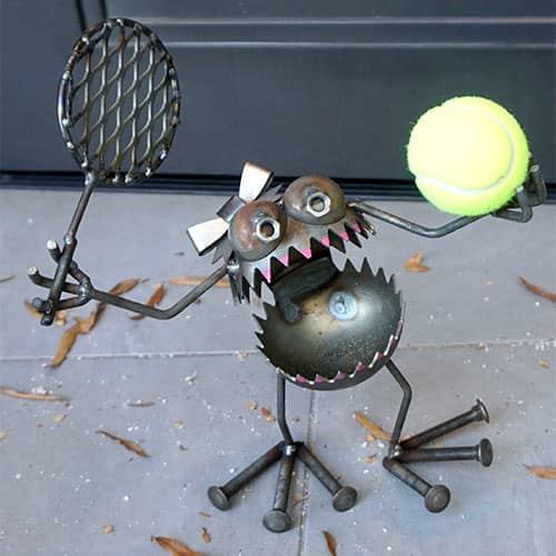 More from the wacky guys at Sugar Post. This time, you won't need a back yard - just some real estate on your desk, shelf, or fridge. But, you can still put her to work in your garden too. This gal has a powerful serve. You can just tell. Stands about 18" tall to tip of racket. 11" wide. We no longer have this on our shelf so it will be shipped directly from the Sugarpost studio. Please allow 7 - 10 days.