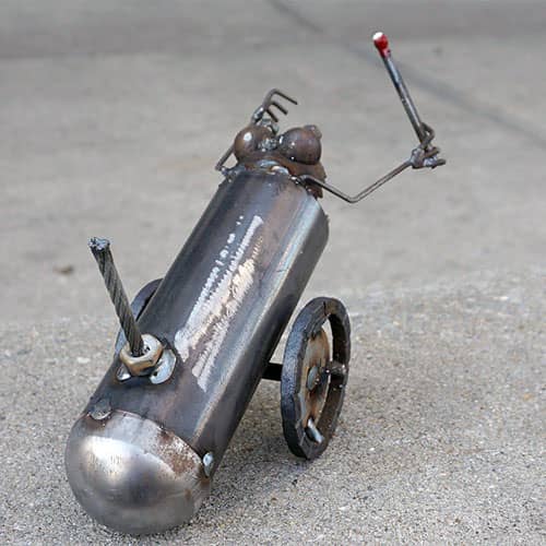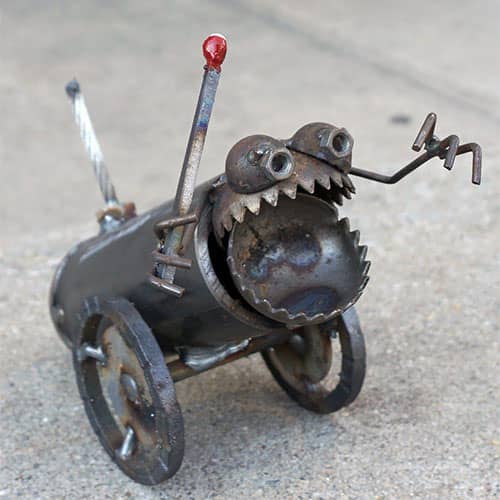 Sugar Post critters are made in Salt Lake City, Utah. All items are handmade from recycled scrap metal and vintage World War II military surplus. Most items are made from 100% post consumer waste or surplus. Some incorporate factory "seconds", or mis-cuts. All products are welded, plasma cut and assembled in the studio.