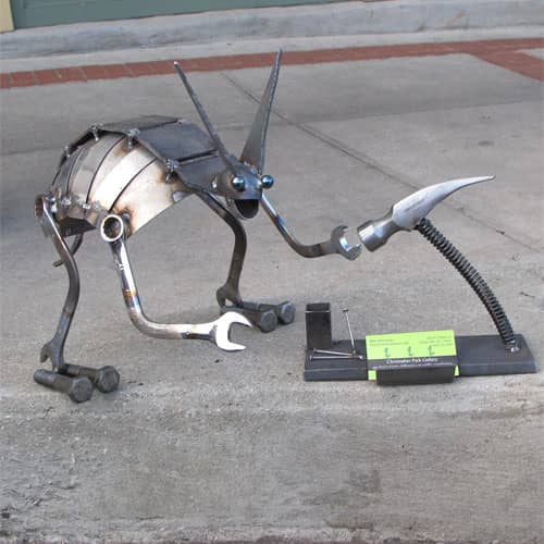 Sugar Post critters are made in Salt Lake City, Utah. All items are handmade from recycled scrap metal and vintage World War II military surplus. Most items are made from 100% post consumer waste or surplus. Some incorporate factory "seconds", or mis-cuts. All products are welded, plasma cut and assembled in the studio.