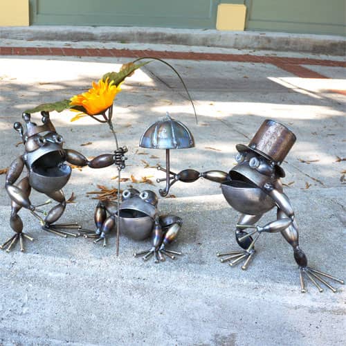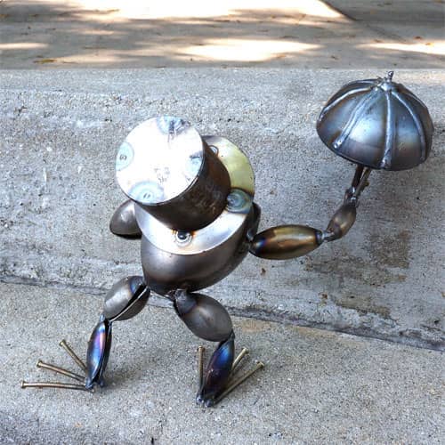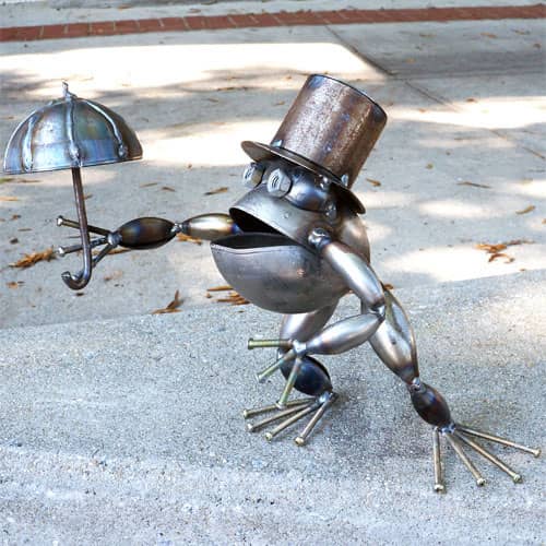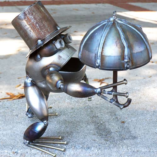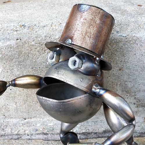 Sugar Post critters are made in Salt Lake City, Utah. All items are handmade from recycled scrap metal and vintage World War II military surplus. Most items are made from 100% post consumer waste or surplus. Some incorporate factory "seconds", or mis-cuts. All products are welded, plasma cut and assembled in the studio, and every product is signed by the artist.