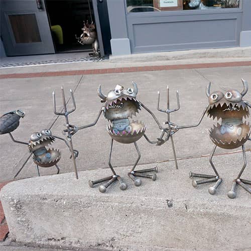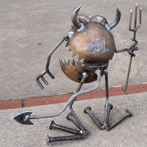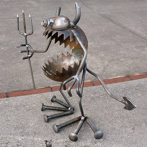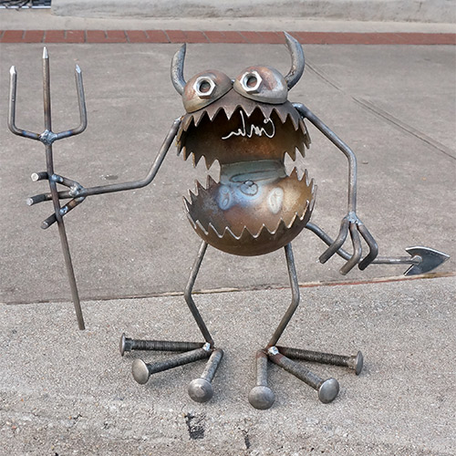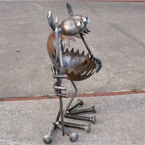Sugar Post critters are made in Salt Lake City, Utah. All items are handmade from recycled scrap metal and vintage World War II military surplus. Most items are made from 100% post consumer waste or surplus. Some incorporate factory "seconds", or mis-cuts. All products are welded, plasma cut and assembled in the studio, and every product is signed by the artist.