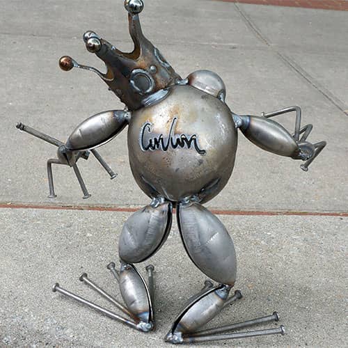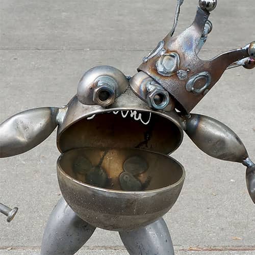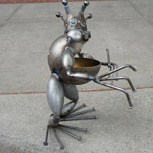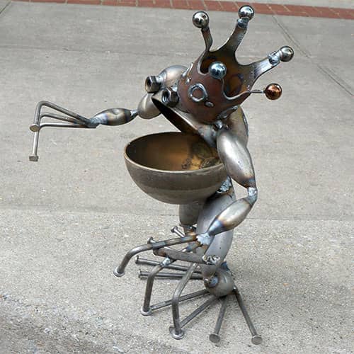 Sugar Post critters are made in Salt Lake City, Utah. All items are handmade from recycled scrap metal and vintage World War II military surplus. Most items are made from 100% post consumer waste or surplus. Some incorporate factory "seconds", or mis-cuts. All products are welded, plasma cut and assembled in the studio, and every product is signed by the artist.