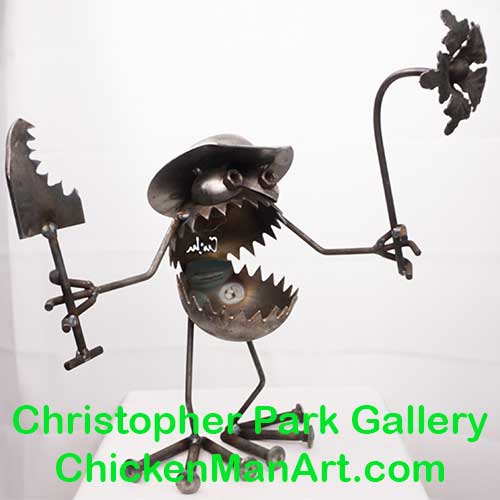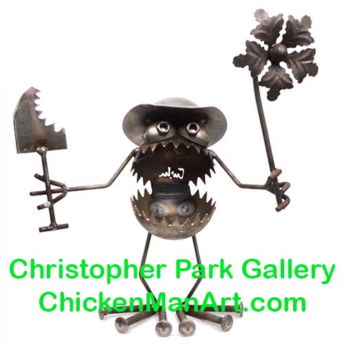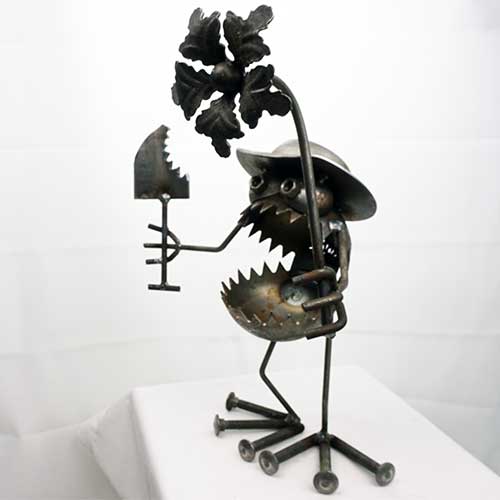 A gardening GBG. Every garden should have one. Measures about 14" tall to top of flower and 12" wide. We no longer have this piece on our shelves however the awesome guys at Sugarpost will ship one directly from their studio. It will be similar but not identical due to the one-of-a-kind nature of the work.