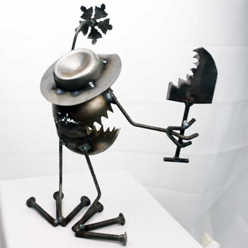 Sugar Post critters are made in Salt Lake City, Utah. All items are handmade from recycled scrap metal and vintage World War II military surplus. Most items are made from 100% post consumer waste or surplus. Some incorporate factory "seconds", or mis-cuts. All products are welded, plasma cut and assembled in the studio, and every product is signed by the artist.