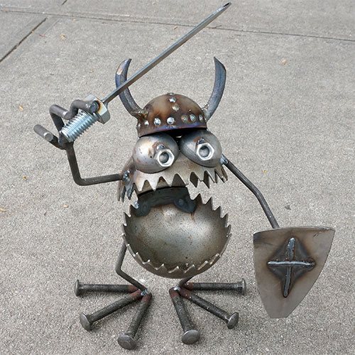 Sugar Post critters are made in Salt Lake City, Utah. All items are handmade from recycled scrap metal and vintage World War II military surplus. Most items are made from 100% post consumer waste or surplus. Some incorporate factory "seconds", or mis-cuts. All products are welded, plasma cut and assembled in the studio, and every product is signed by the artist.