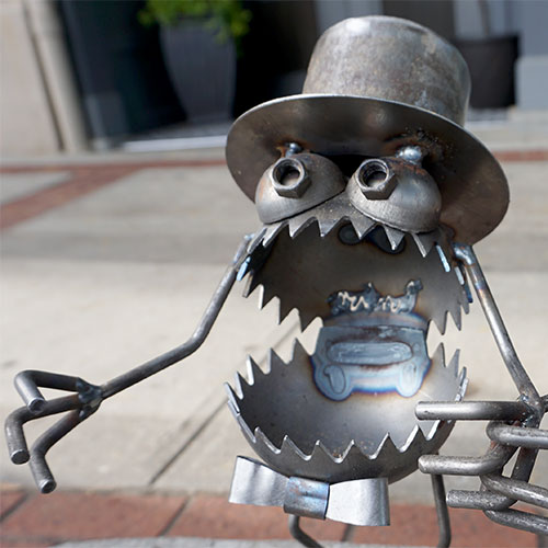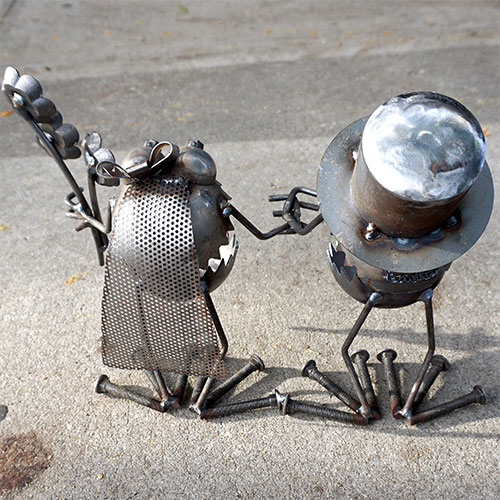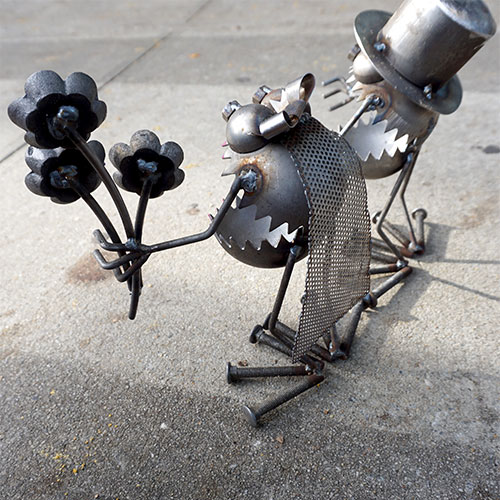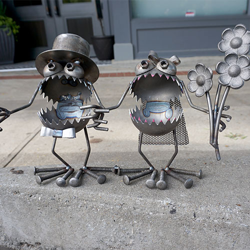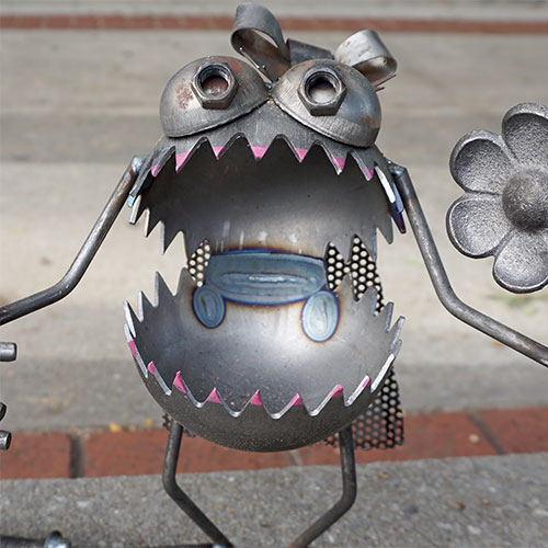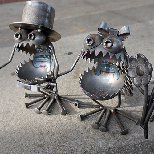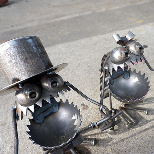 Sugar Post critters are made in Salt Lake City, Utah. All items are handmade from recycled scrap metal and vintage World War II military surplus. Most items are made from 100% post consumer waste or surplus. Some incorporate factory "seconds", or mis-cuts. All products are welded, plasma cut and assembled in the studio, and every product is signed by the artist.