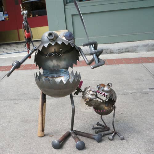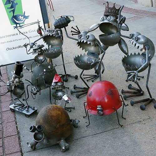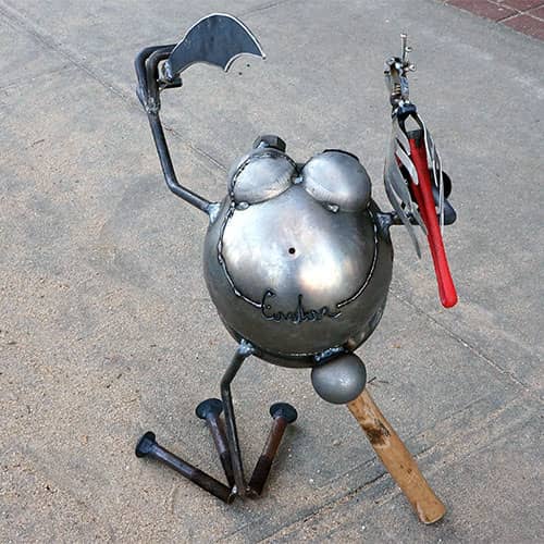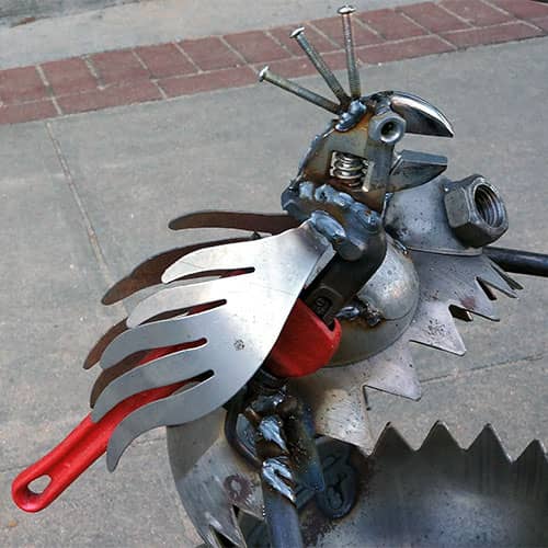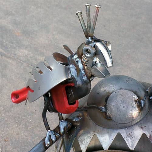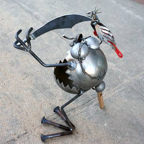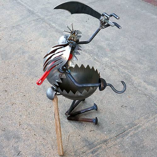 Sugar Post critters are made in Salt Lake City, Utah. All items are handmade from recycled scrap metal and vintage World War II military surplus. Most items are made from 100% post consumer waste or surplus. Some incorporate factory "seconds", or mis-cuts. All products are welded, plasma cut and assembled in the studio, and every product is signed by the artist.