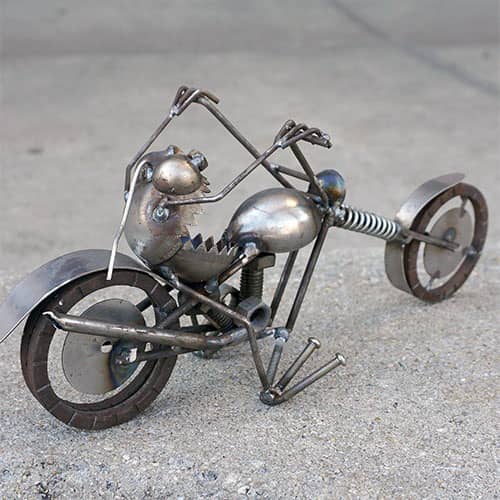 Sugar Post critters are made in Salt Lake City, Utah. All items are handmade from recycled scrap metal and vintage World War II military surplus. Most items are made from 100% post consumer waste or surplus. Some incorporate factory "seconds", or mis-cuts. All products are welded, plasma cut and assembled in the studio.