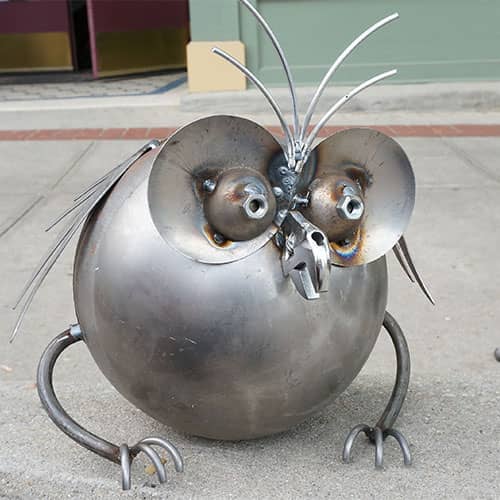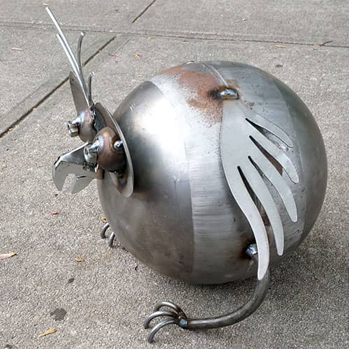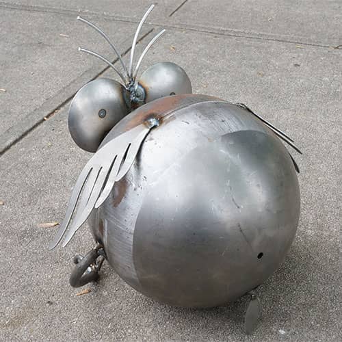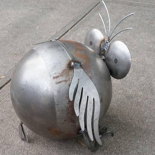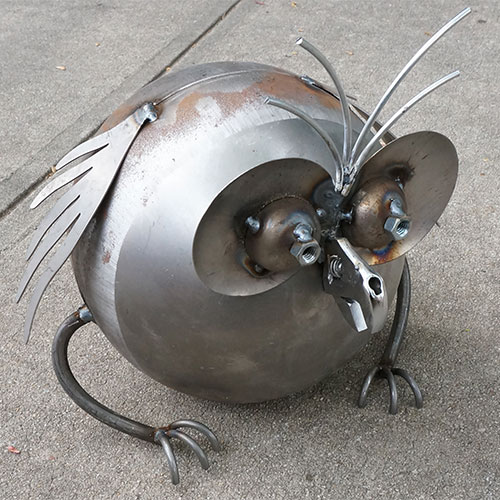 Sugar Post critters are made in Salt Lake City, Utah. All items are handmade from recycled scrap metal and vintage World War II military surplus. Most items are made from 100% post consumer waste or surplus. Some incorporate factory "seconds", or mis-cuts. All products are welded, plasma cut and assembled in the studio, and every product is signed by the artist.