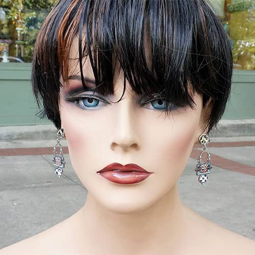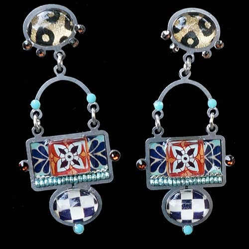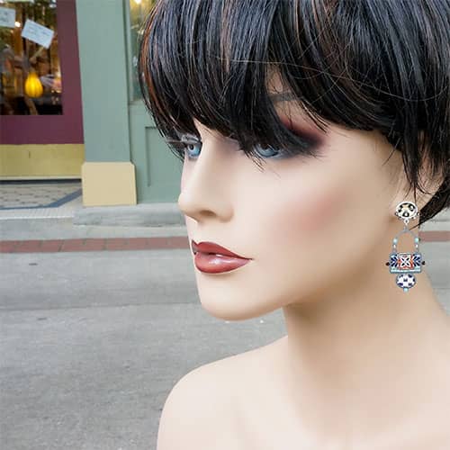 These post earrings are 2" from top to bottom. Design is almost 1.5" long and .75" at the widest. Very light weight and swingy.