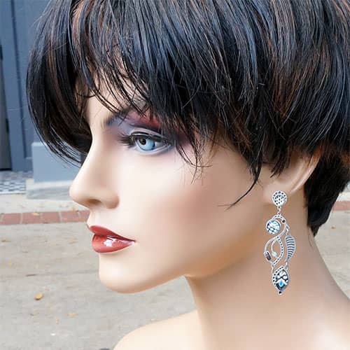 These post earrings are 2.75" from top to bottom. 3/4" wide across the middle. Very light weight.