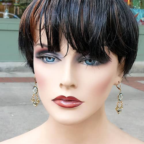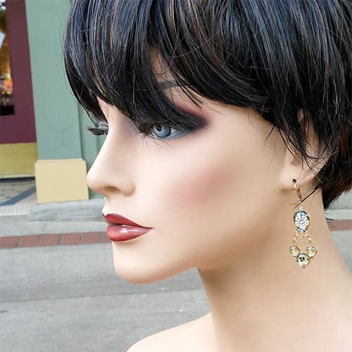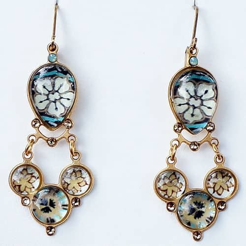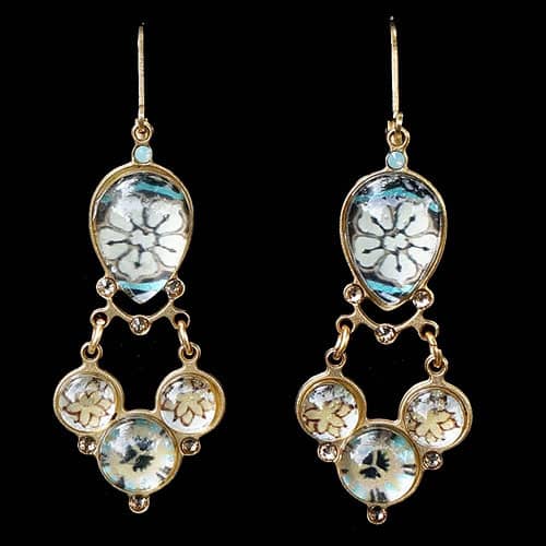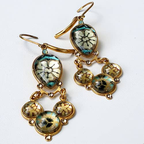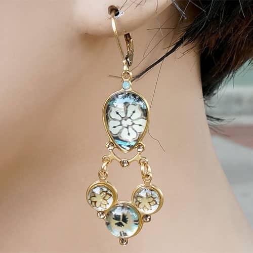 These earrings are 2" from the center of the ear wire curve. Design is 1.5" long. Almost .75" at the widest. Very light weight and swingy.