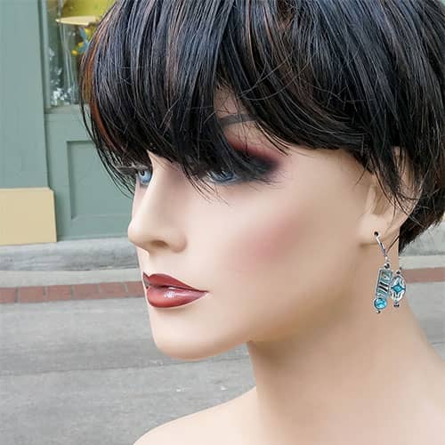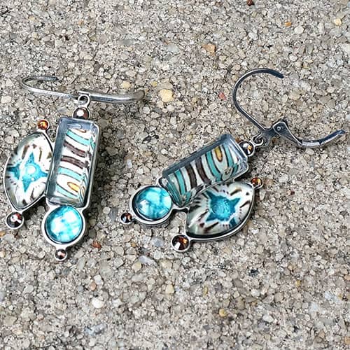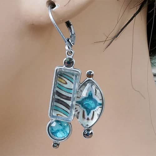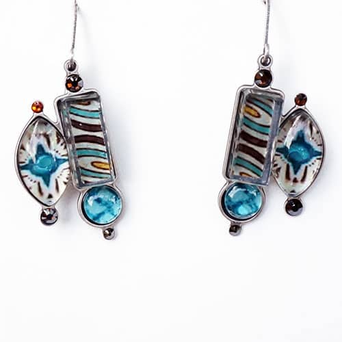 These earrings are 1.75" from top to bottom, measured from center of the ear wire curve. Design is 1" long. Just over .5" at the widest.