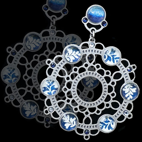 These earrings are 2" from top to bottom. Design is 1.5" diameter. Very light weight and swingy.