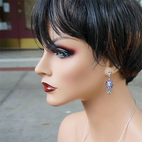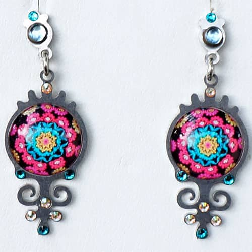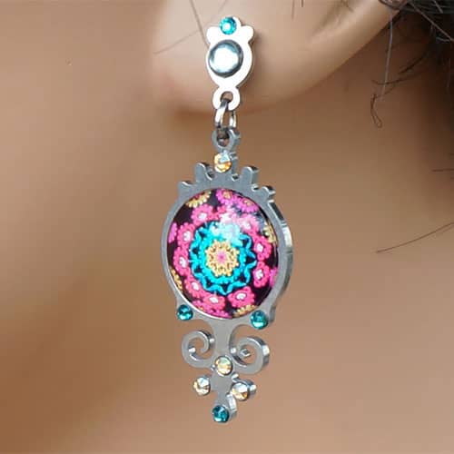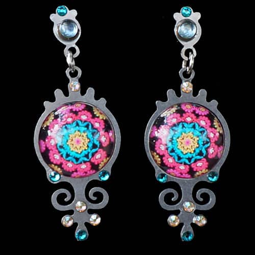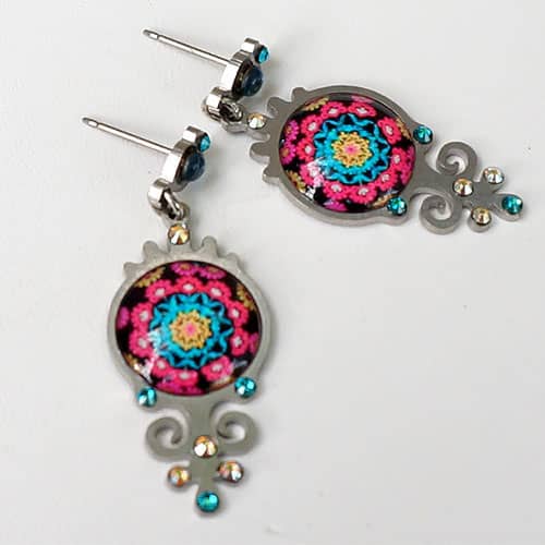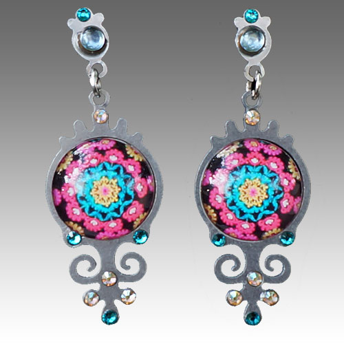 Don't know why, but they remind me of the good old flower power days. Bright colors, gauze blouses and flowers in our hair. Not something I know about. Just readabout it. Yeah...that's it. Post earrings. Design is just ovwer 1". Total length from top of post is just over 1.5".
